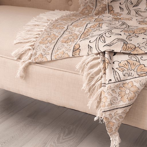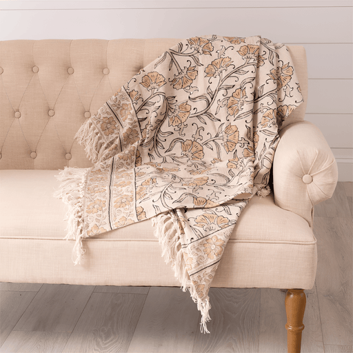 Block Print Floral Cotton Throw