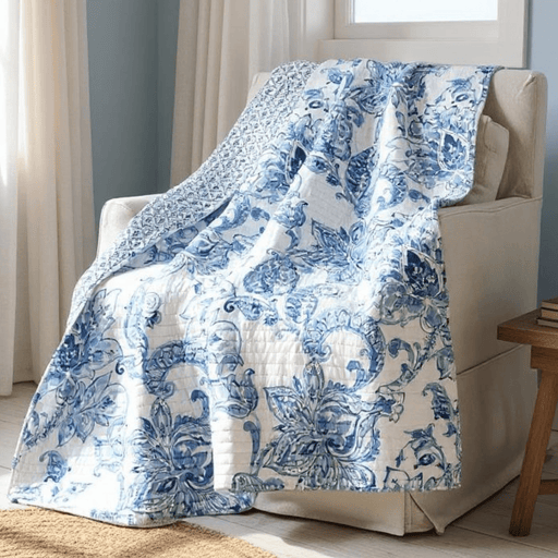 Blue and White Paisley Floral Reversible Throw