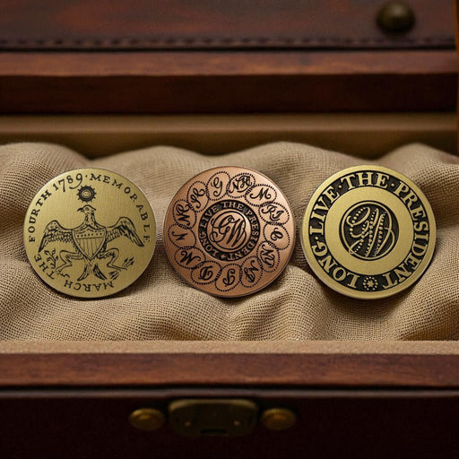 In stockCommemorate a foundational moment in American history with this set of three replica lapel pins, inspired by original inaugural buttons created to ...