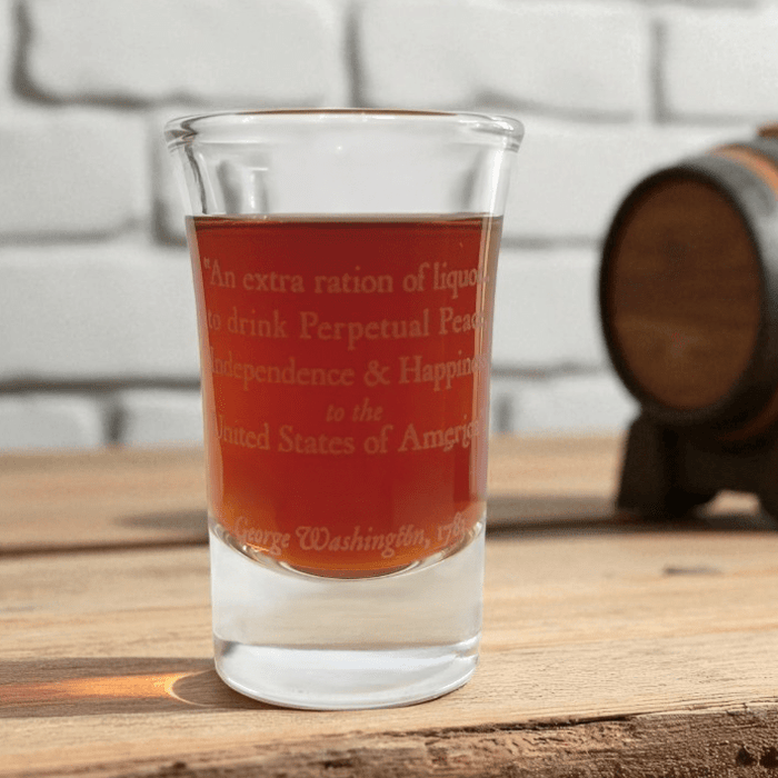 Toast to American independence with this collectible shot glass etched with an abbreviated 1783 quote from George Washington:
