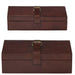 Add timeless sophistication to your space with these Brown Leather Suede Boxes. Designed with a rich brown leather exterior, soft suede lining, and accented with vintage-style brass buckles, these boxes capture the essence of classic craftsmanship. Perfect for storing keepsakes, documents, or small treasures, each box is a handsome nod to early American tradition. Sold individually, they bring both beauty and function to your home or office.