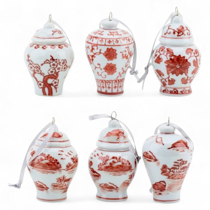 Red and White Mini Porcelain Jar Ornaments – Set of 6