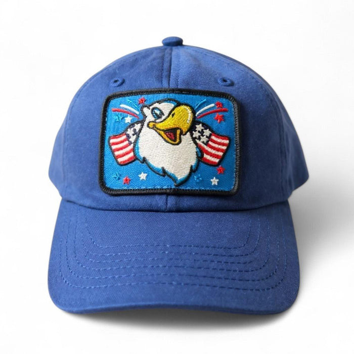 Celebrate America’s 250th with your young patriot in this vibrant youth baseball cap! Featuring a cheerful bald eagle patch surrounded by fireworks and American flags, this spirited design brings excitement and pride to any patriotic occasion. Whether your child is attending a Fourth of July parade, visiting Mount Vernon, or simply showing off their American spirit, this cap is a fun and festive accessory they’ll love to wear.