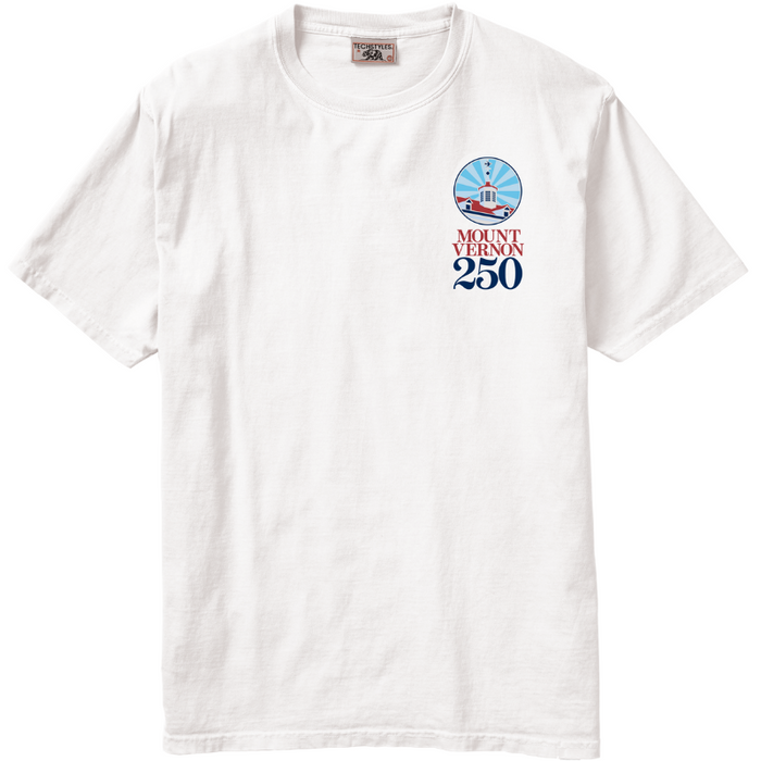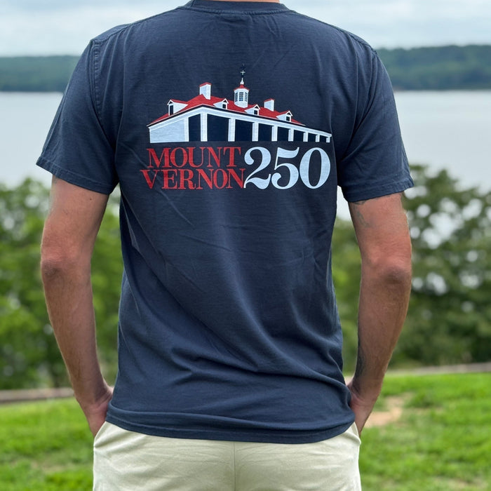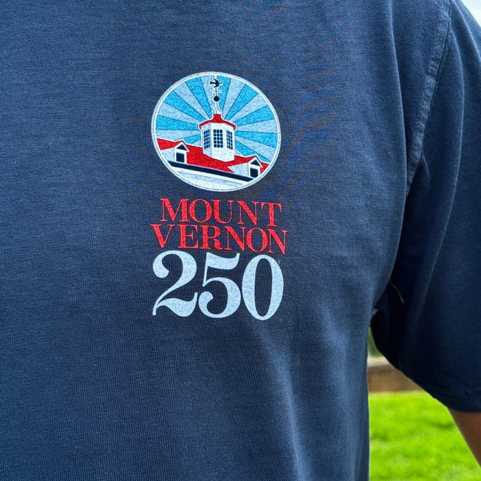 Celebrate 250 years of American independence with this exclusive Mount Vernon 250th Anniversary T-Shirt featuring the iconic Mount Vernon Mansion on the front and the east front of the estate on the back—famously known as George Washington’s view, overlooking the Potomac River. This design blends national pride with historical elegance, making it a meaningful tribute to the nation’s founding.