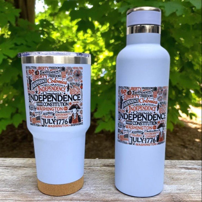 how off your patriotic spirit with this bold and meaningful Independence Water Bottle. Featuring a design inspired by the Declaration of Independence, itâs the perfect companion for your July 4th celebrationsâwhether you're watching fireworks, enjoying a picnic, or raising a toast to freedom.